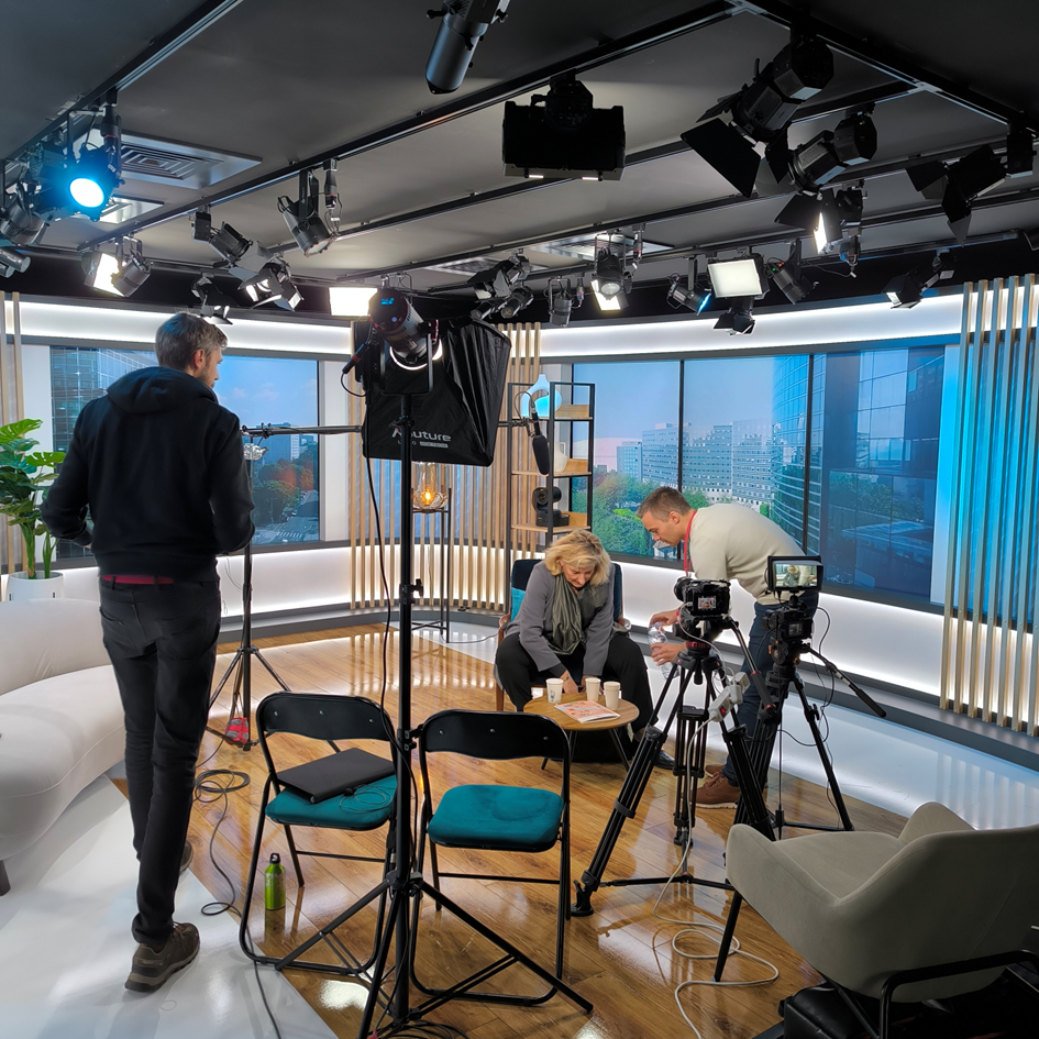 (Plateau de tournage des entretiens pour Saint-Gobain à Paris La Défense)